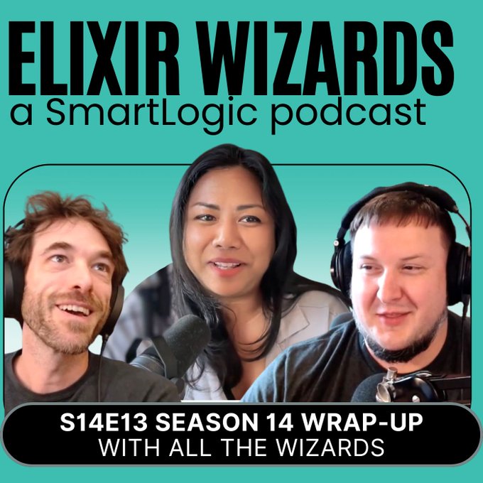 @smartlogic 🎙️ It’s a wrap on Season 14: Enter the Elixirverse! Wizards Dan, Charles & Sundi look back on what we learned: dataframes to deployment to interop, and what’s next for the ecosystem. ▶️ https://t.co/XWAVdZaXcv 🎧 https://t.co/rHiX3ueipL #elixirlangsmr.tl/4mvXX4Mco/Xsmr.tl/47N4P9l/t.co/rHiX3ueipL #elixirlang /t.co/CK4t3gu6ZG